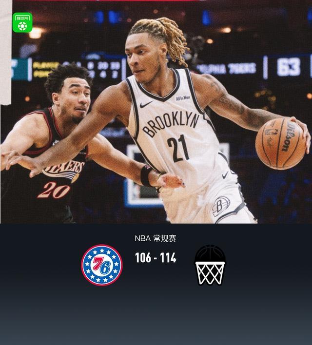 北京时间12月24日NBA 常规赛,费城76人对阵布鲁克林篮网。半场76人57-63篮网,最终76人106-114篮网。