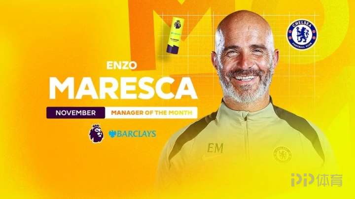英超官方消息,切尔西主帅马雷斯卡当选11月最佳主帅,击败阿尔特塔、埃梅里、瓜迪奥拉等教练,切尔西在11月份的联赛取得3胜1平的战绩。