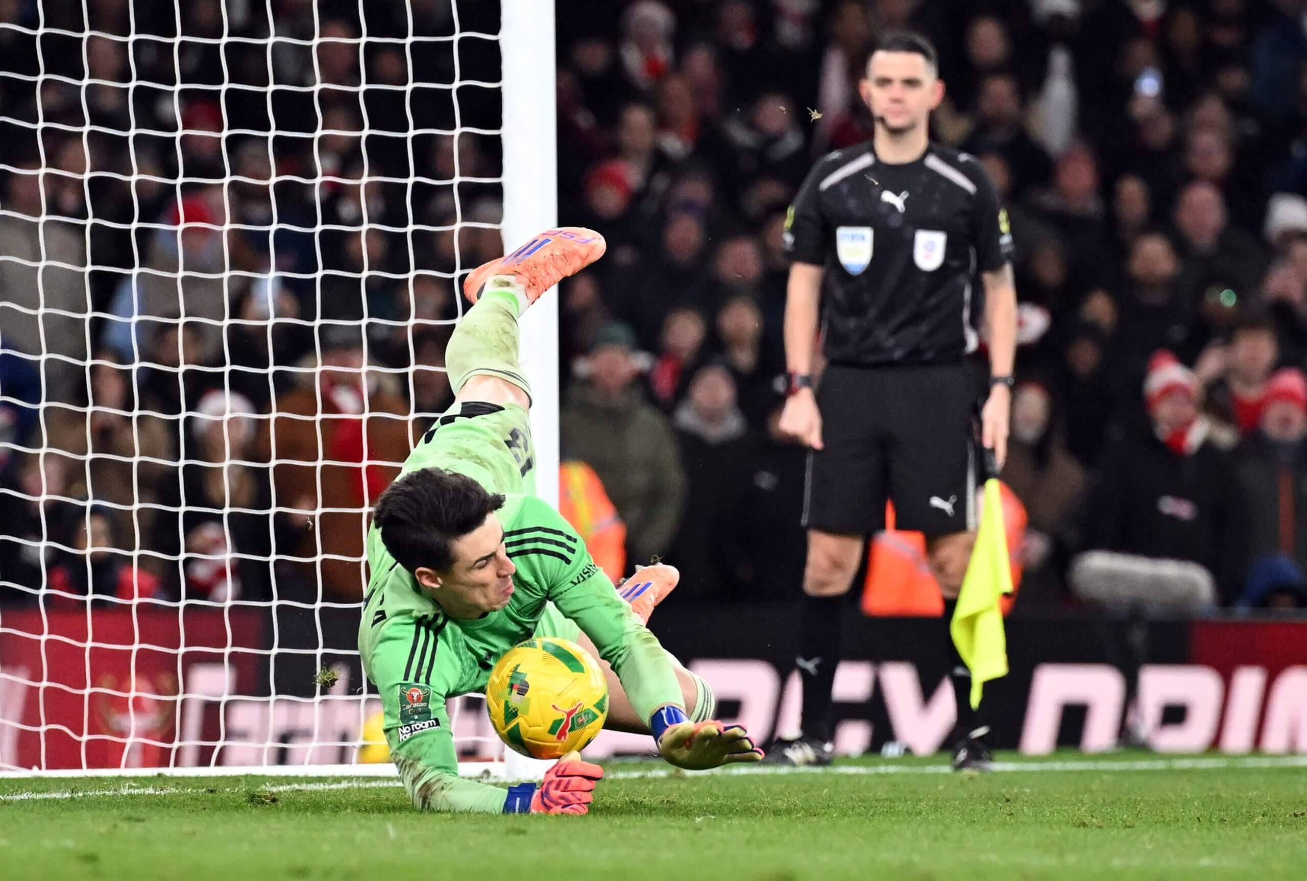 两队球员主罚点球的质量都体现了无畏与精湛,让人感觉仿佛要等到圣诞火鸡上桌时,他们还在互射点球。终于,在双方15次尝试、比分战至8-7后,其中一位门将判断对了方向,凯帕加飞身扑出了马克桑斯-拉克鲁瓦的点球。